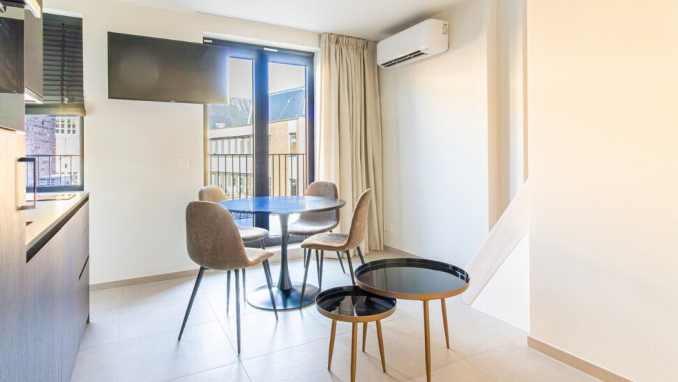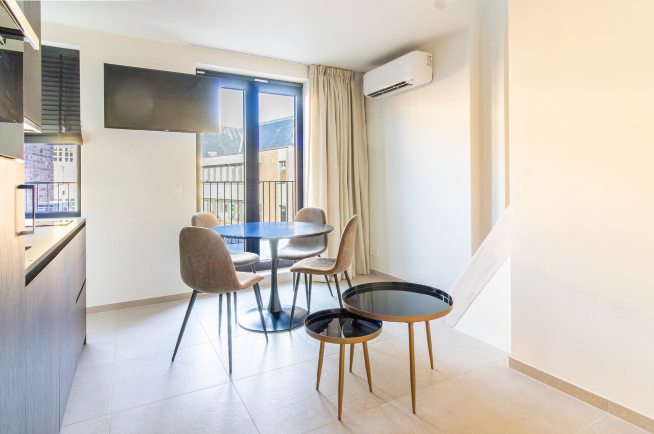 duplex studio te huur op toplocatie in centrum Leuven Deze volledig gerenoveerde studio met een EPC label B is met zijn tijdloze en smaakvolle afwerking een echte buitenkans. De zeer smaakvol ingerichte keuken, badkamer zijn met het maatwerk volledig op elkaar afgestemd. Deze duplex studio met terras zal half bemeubeld verhuurd worden (met bed, gordijnen en maatwerk kasten) interesse? mail voor een bezoek maarten@vastgoedseels.be tel 0471904413