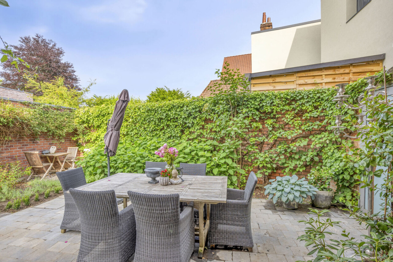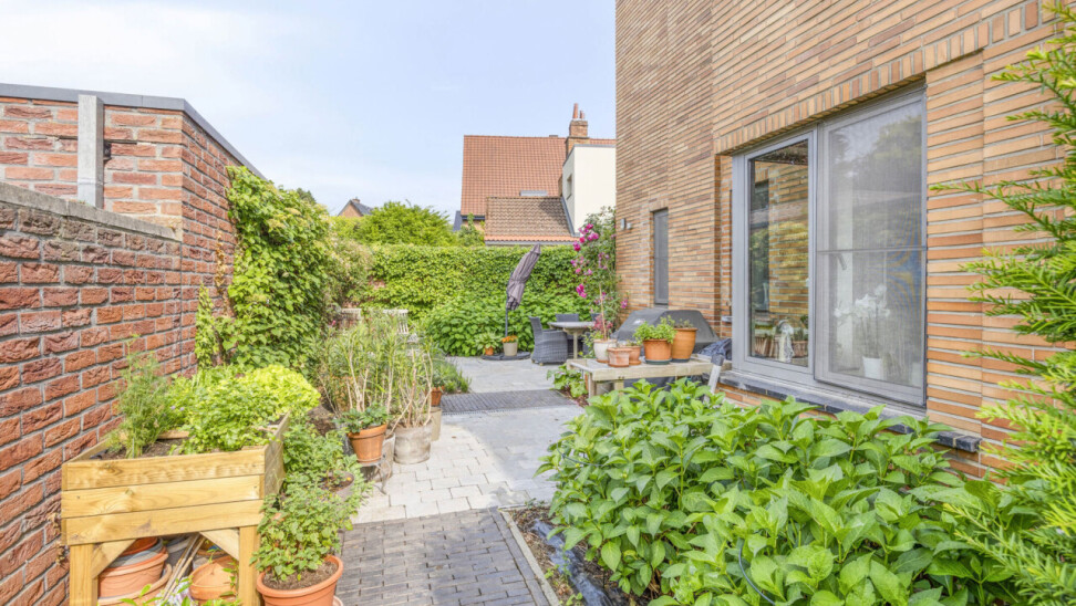 Op het terras met berging waant u zich in het zuiden. De inrichting en de beplanting zorgen voor een heel relaxte sfeer.