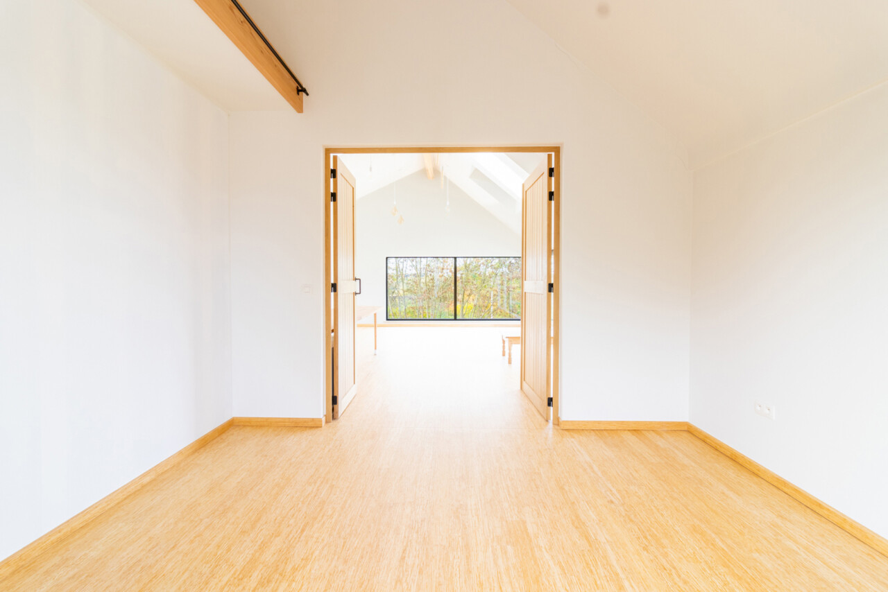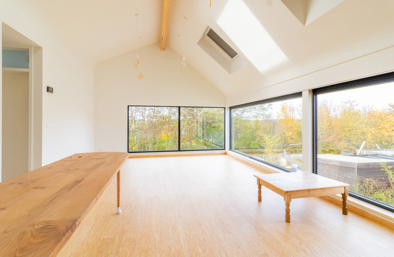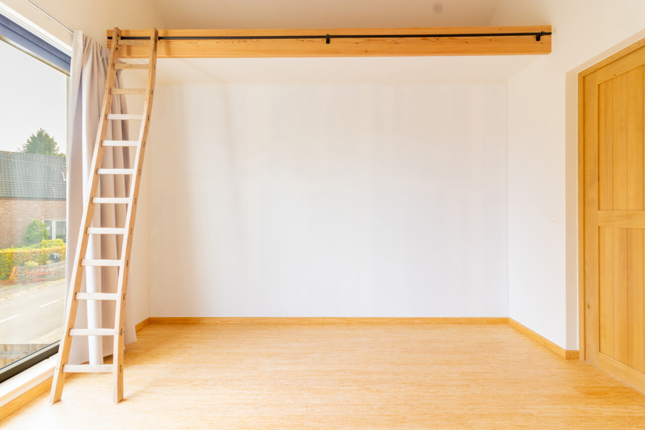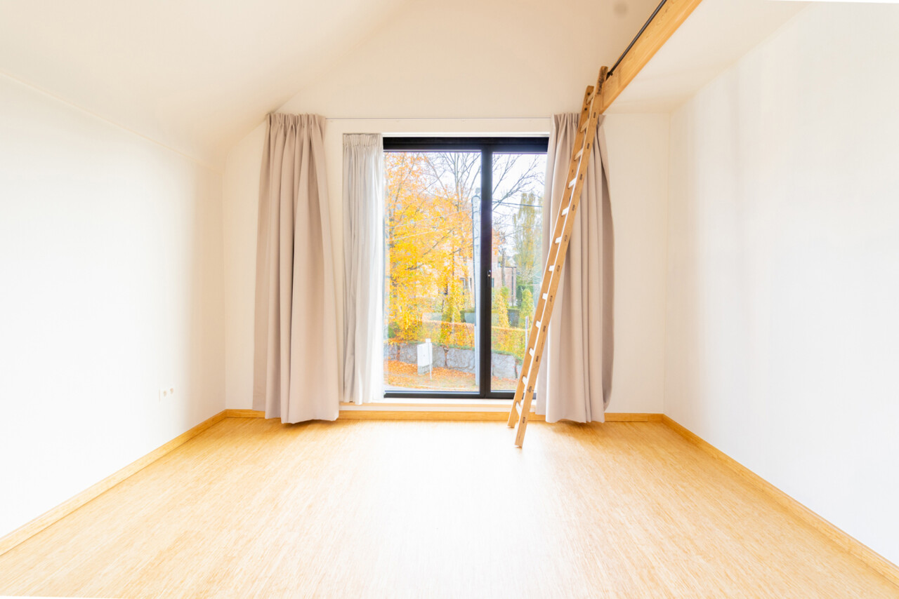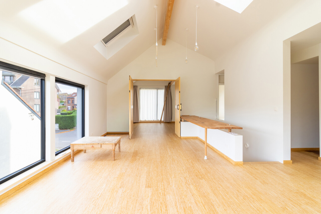 De eerste verdieping biedt twee comfortabele slaapkamers, een tweede, ruime open leefruimte ( bureau / hobby / zithoek), omringd door ramen, en een verzorgde badkamer. De combinatie van licht, ruimte en functionaliteit zorgt voor een aangename woonervaring.
