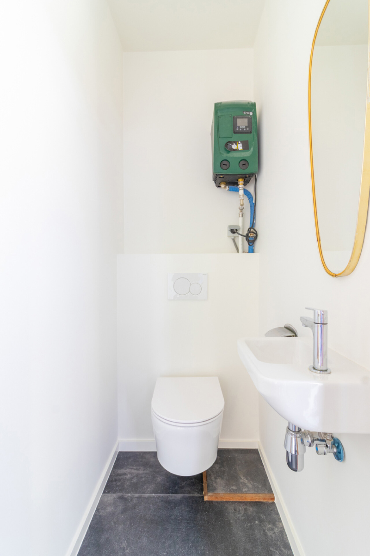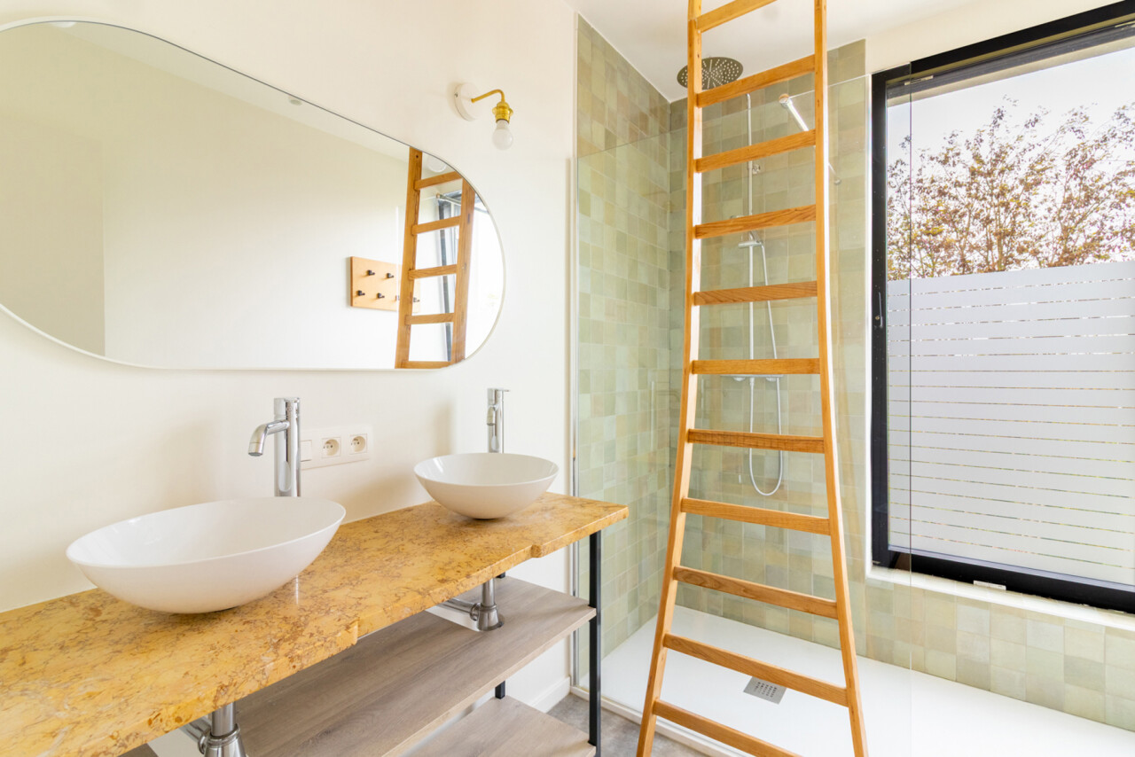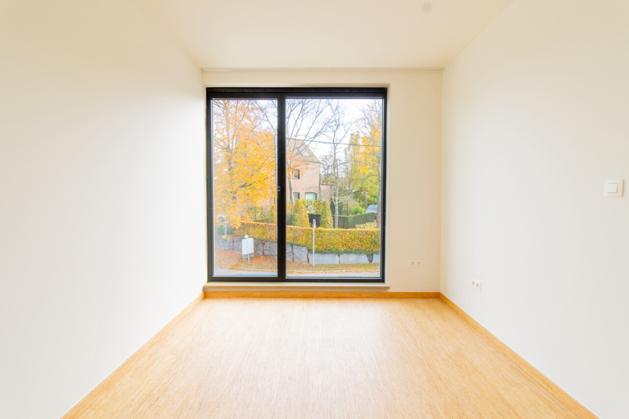 Op het gelijkvloers verwelkomt een open keuken met zicht op de leefruimte, je meteen. Aansluitend bevindt zich de gezellige woonkamer met uitzicht op het terras en de tuin — een ideale plek om te ontspannen of gasten te ontvangen. Een apart toilet aan de inkom vervolledigt deze verdieping.