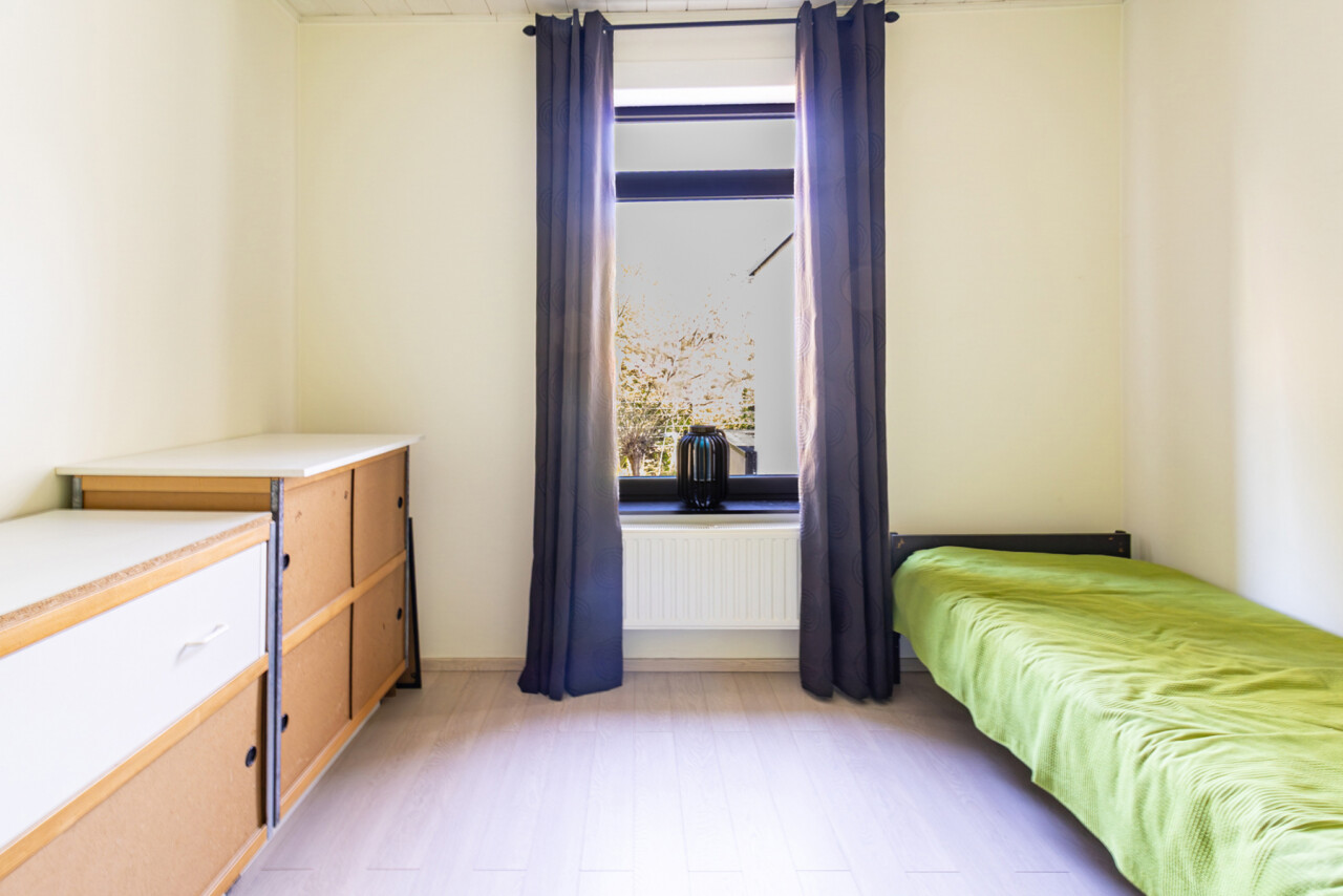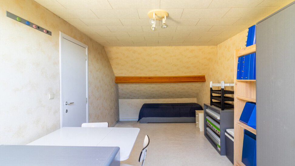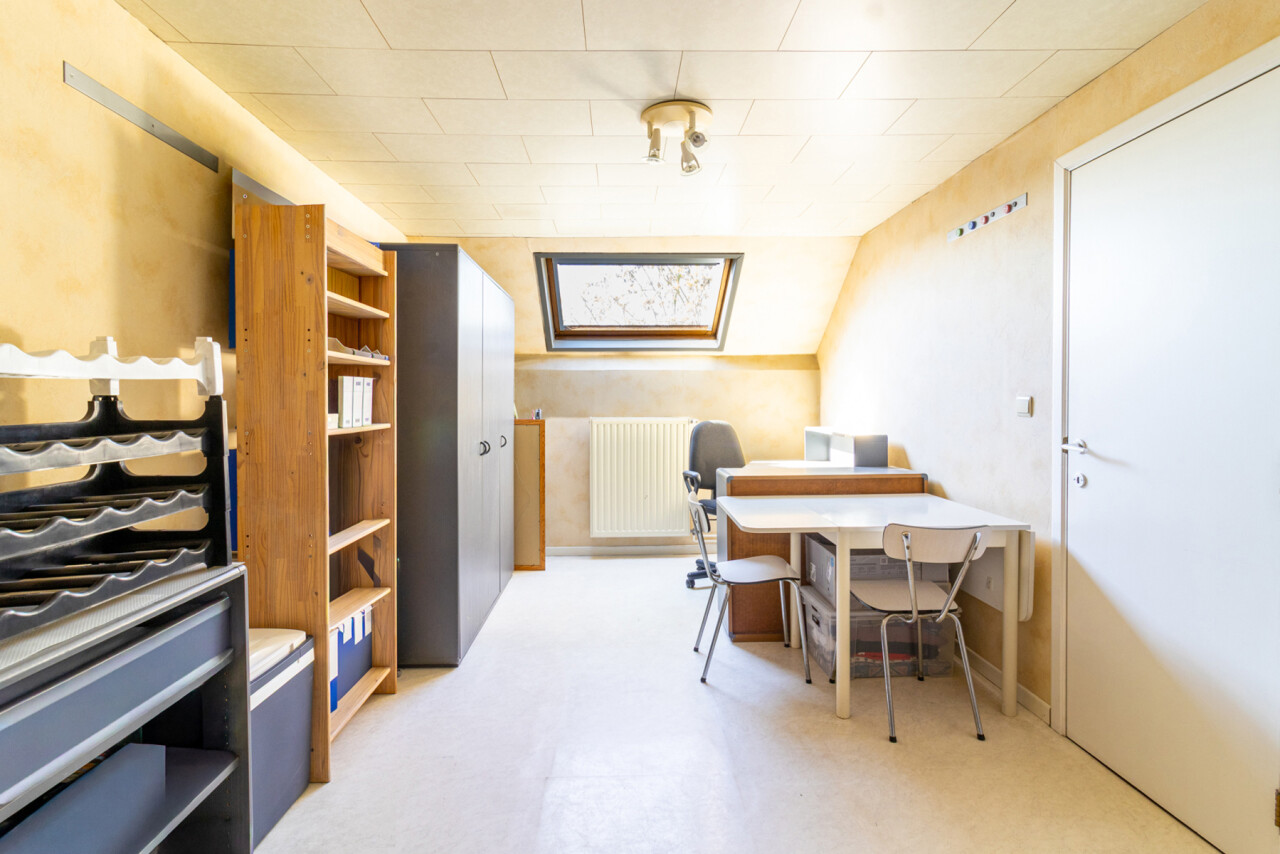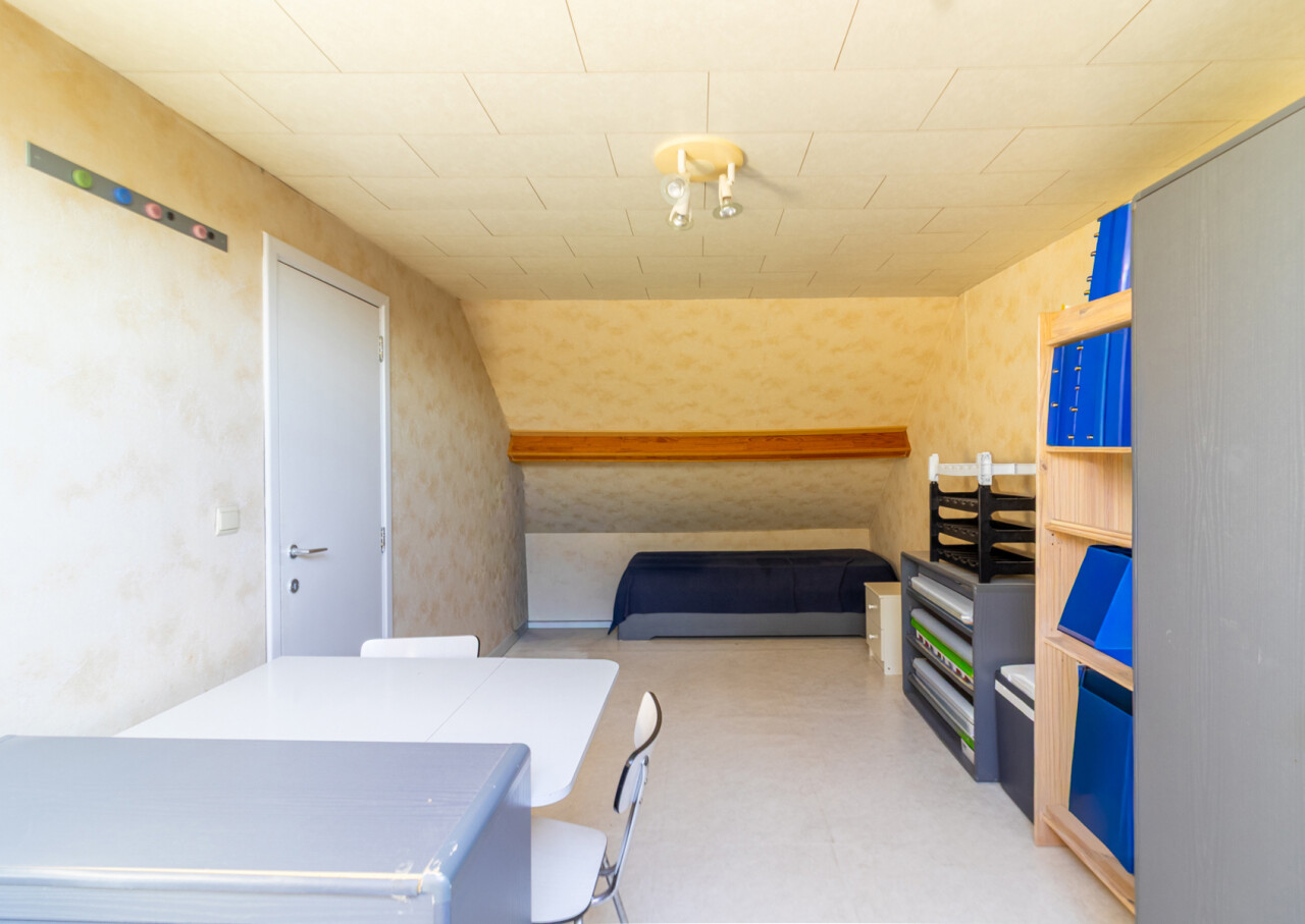 Op de tweede verdieping treft u nog een zeer ruime slaapkamer en een douche.