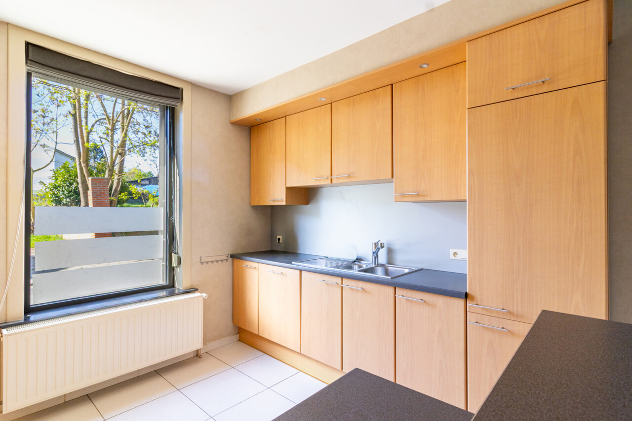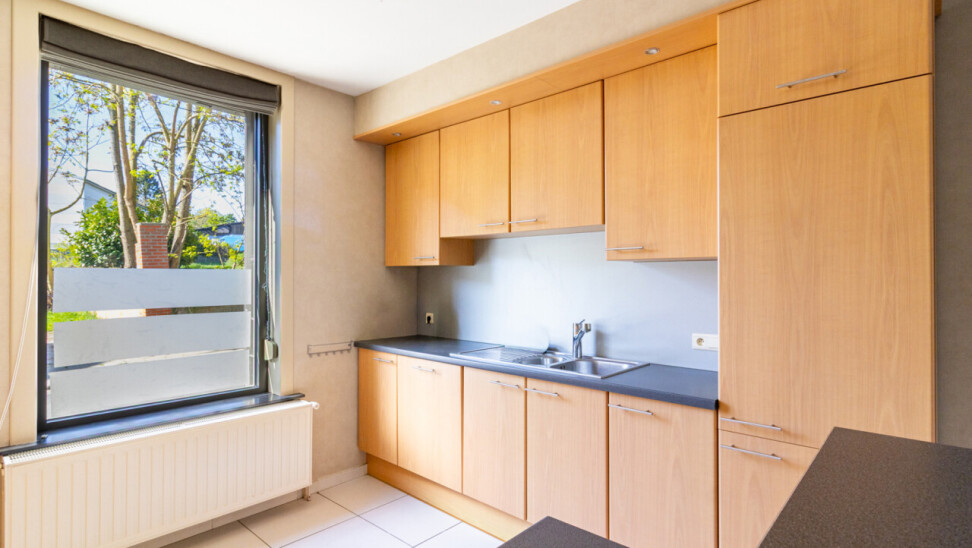 Reeds vanaf de keuken maar vooral vanuit de zitplaats heeft u zicht op het ruime, met zorg en kennis, ( Butaye tuinaanleg) aangelegde terras en groen.