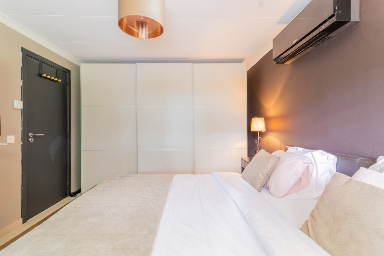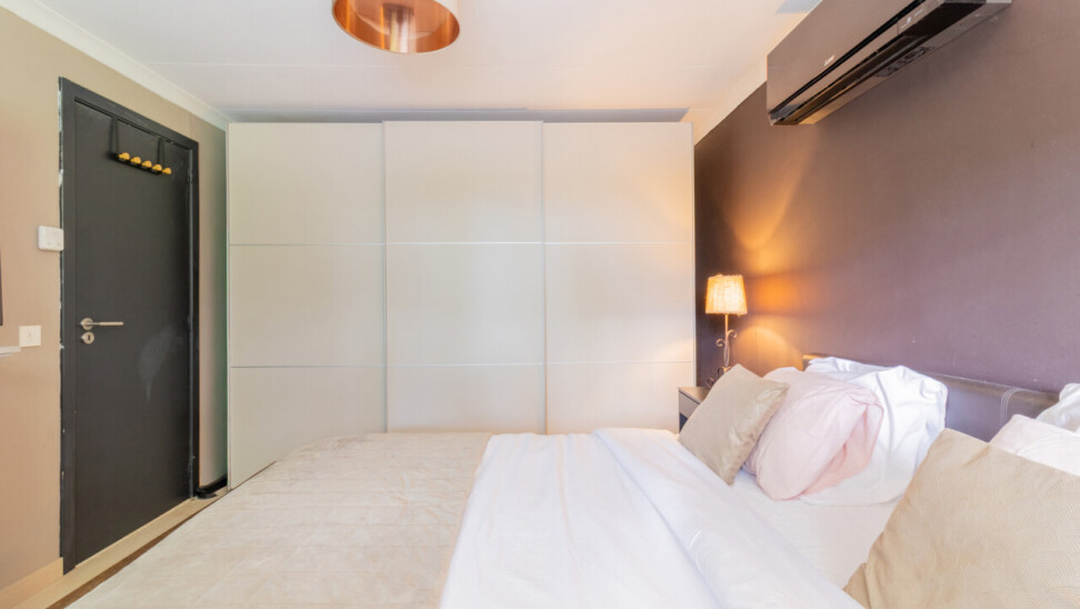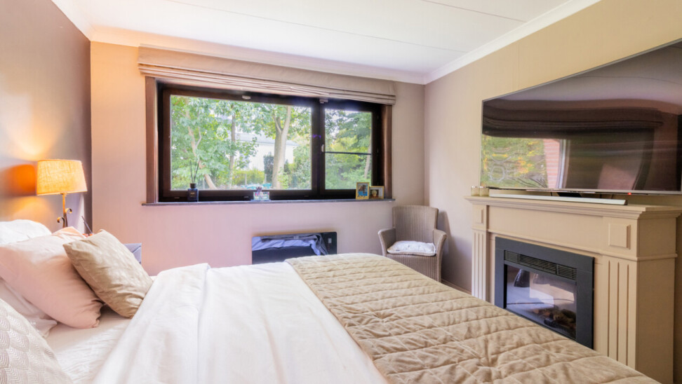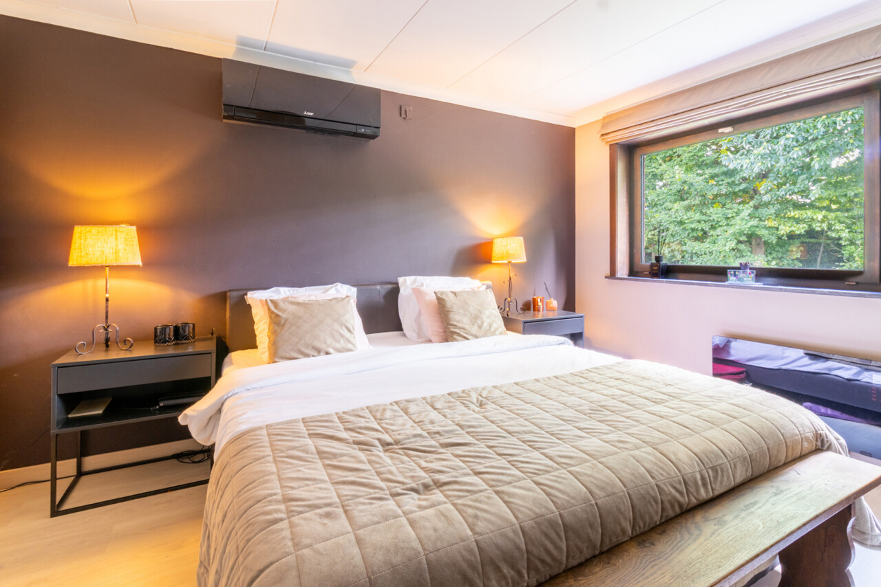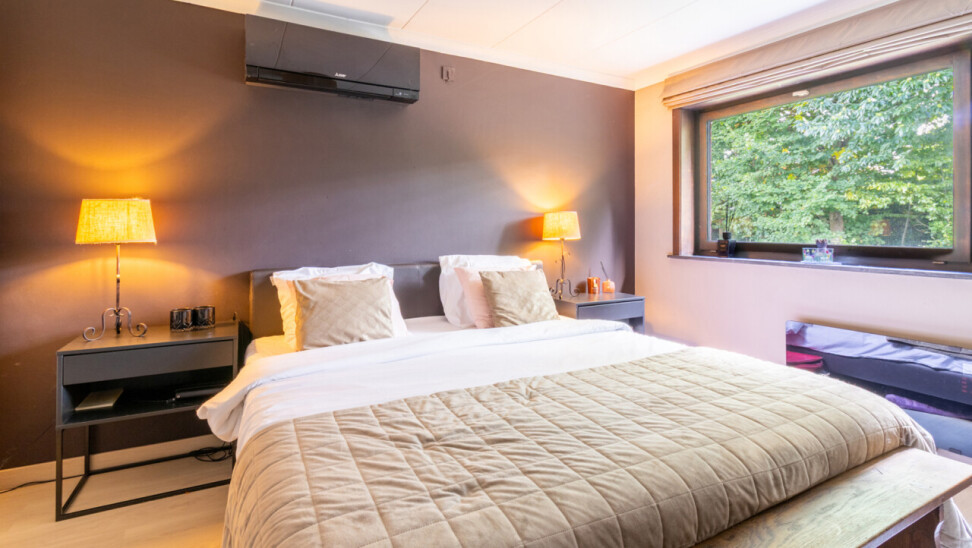 De master bedroom is eveneens uitgerust met een warmtepomp/airco-unit voor optimaal comfort.