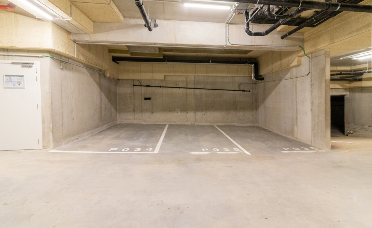 Bij dit appartement hoort een ondergrondse autostaanplaats, een fietsenberging en een private kelder.